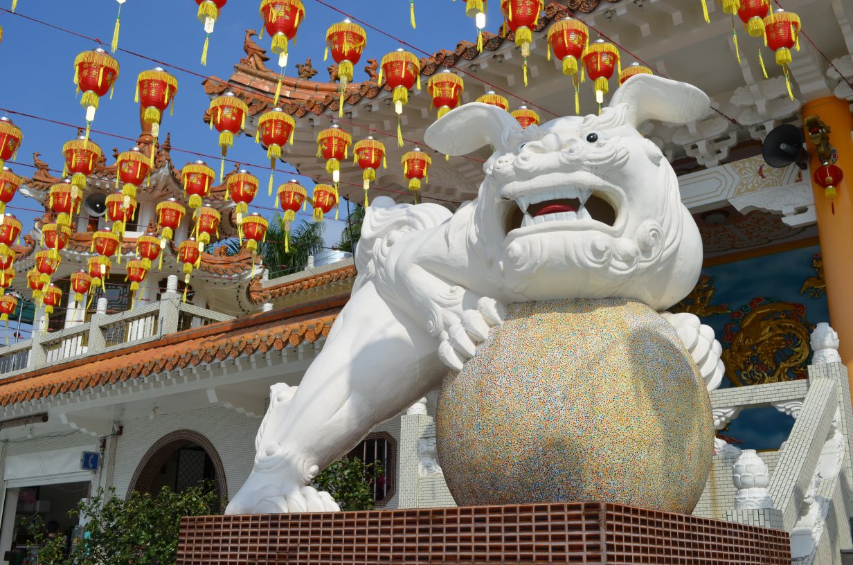 大香山慈音巖建築採中國傳統宮殿造型,參酌現代工程設計,內部雕樑畫棟,外觀斗拱飛簷,精美之處令人目不暇給。 老領導林枝鄉點傳師以易經、五行之理,建廟之初,自方位的勘定,參考天干地支的二十八宿,分別安置在全廟的每一個角落,建材外觀配色,也採用五行相生的次序配合,求其和諧美觀。梵宇外觀主色以黃白二色,即著眼於土生金、金生水的相生道理,有著生生不息的象徵意義。 |
