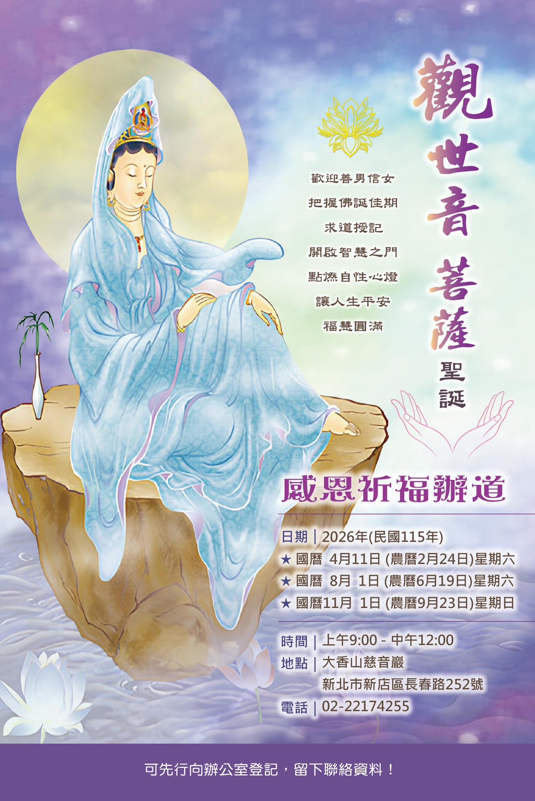 ◆ 4月11日 (農曆 2月24日) 慶祝南海古佛聖誕感恩祈福點道,